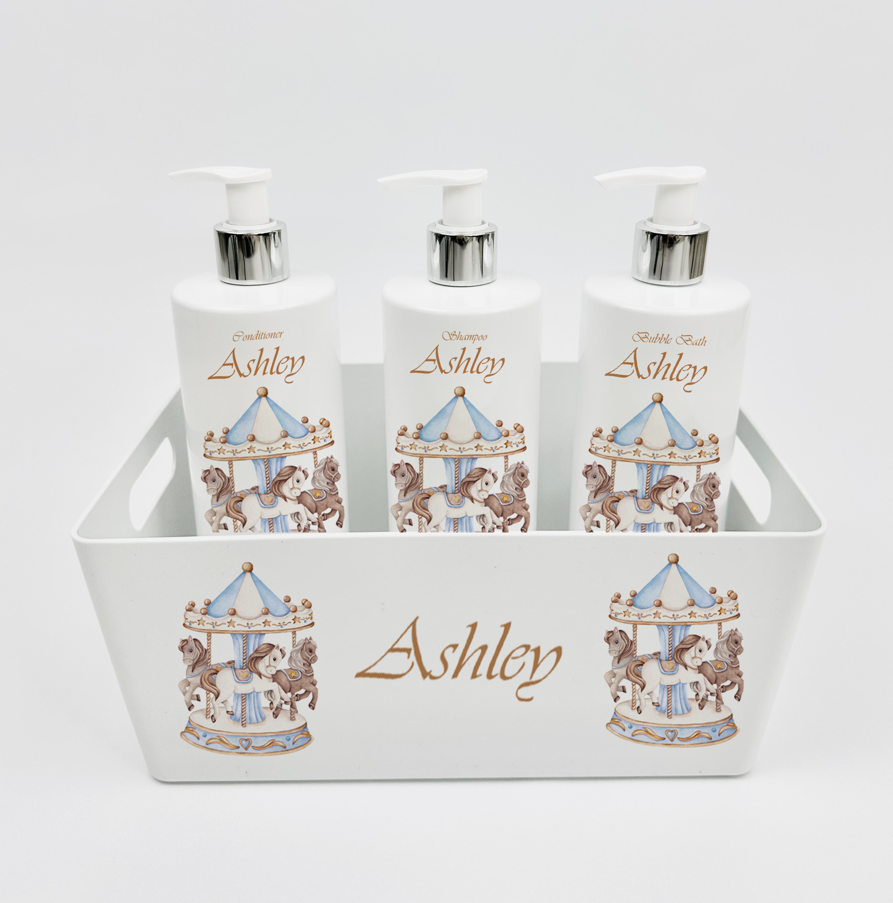Ok baby bath personalised set Carousal Blue