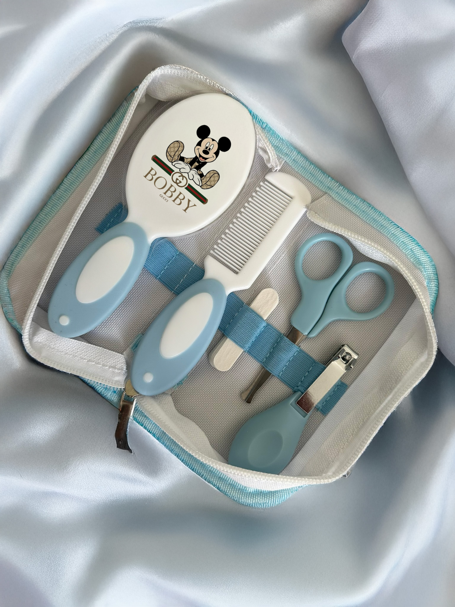 Type: Nail Clippers, Nail File, Baby Comb, Baby Brush, Baby Scissors and Nasal Clearer. all comes in a handy zip up case with security straps to keep little one's items organised.