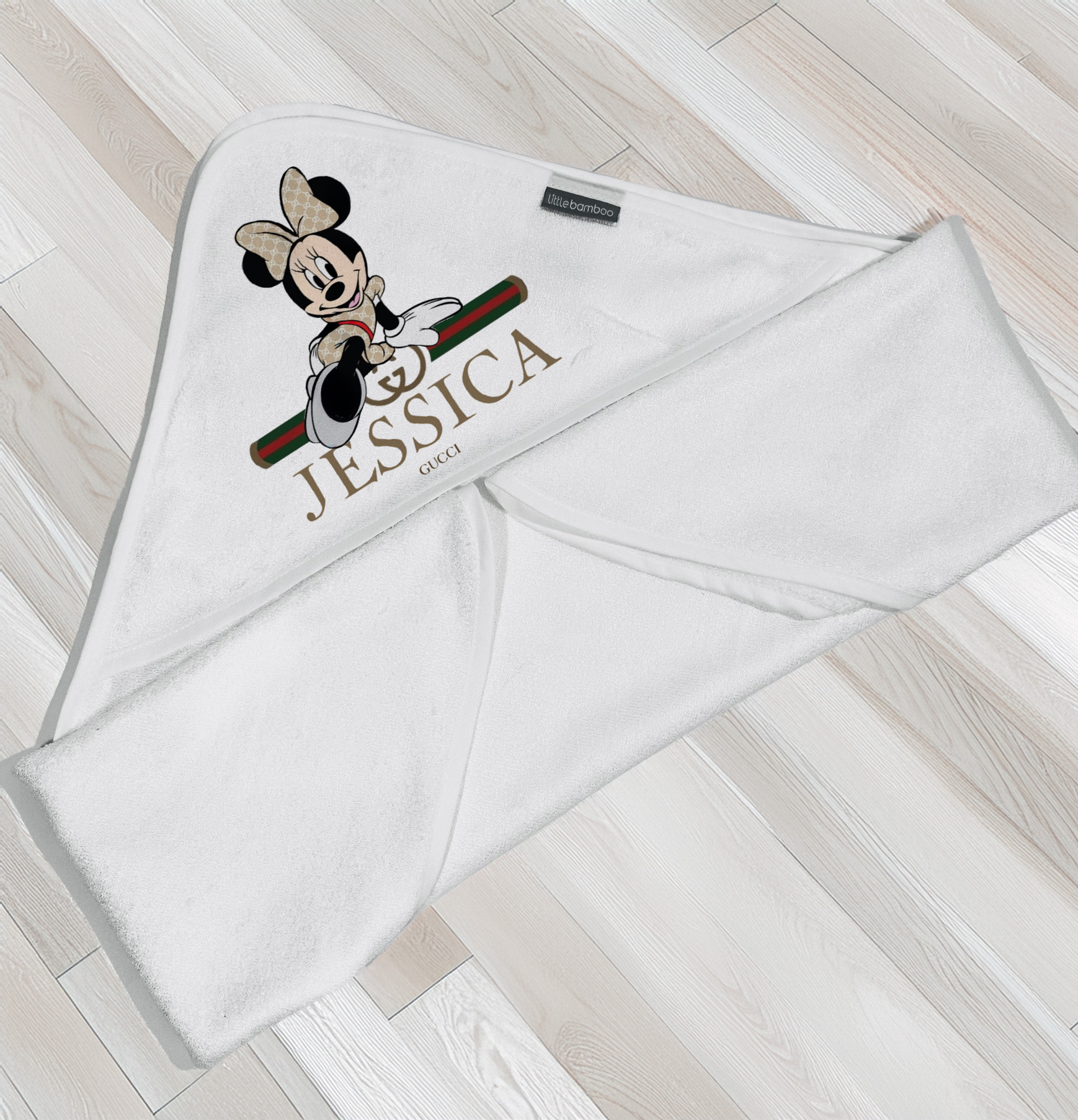 The super soft bamboo fibres in this hooded towel make it far more water absorbent than regular towels. Naturally anti-bacterial , it is the healthy alternative for snuggling and drying your baby after bath time. Leading Australian bedding brand, Little Bamboo, supply a comprehensive range of bamboo baby textiles. Their sheets, blankets, toweling and muslin range is exceptionally soft- ideal for use next to baby's delicate skin. The bamboo fibers used in the sheets and blankets ensure breathability and versatility; warm in winter and cool in summer. Bamboo has excellent wicking properties to draw moisture and keep baby drier, is naturally antibacterial and less susceptible to clinging odors. In addition, Bamboo is an excellent renewable resource requiring little water and no pesticides to grow making it an organic crop and kind to the planet! with name embroidery on hood.