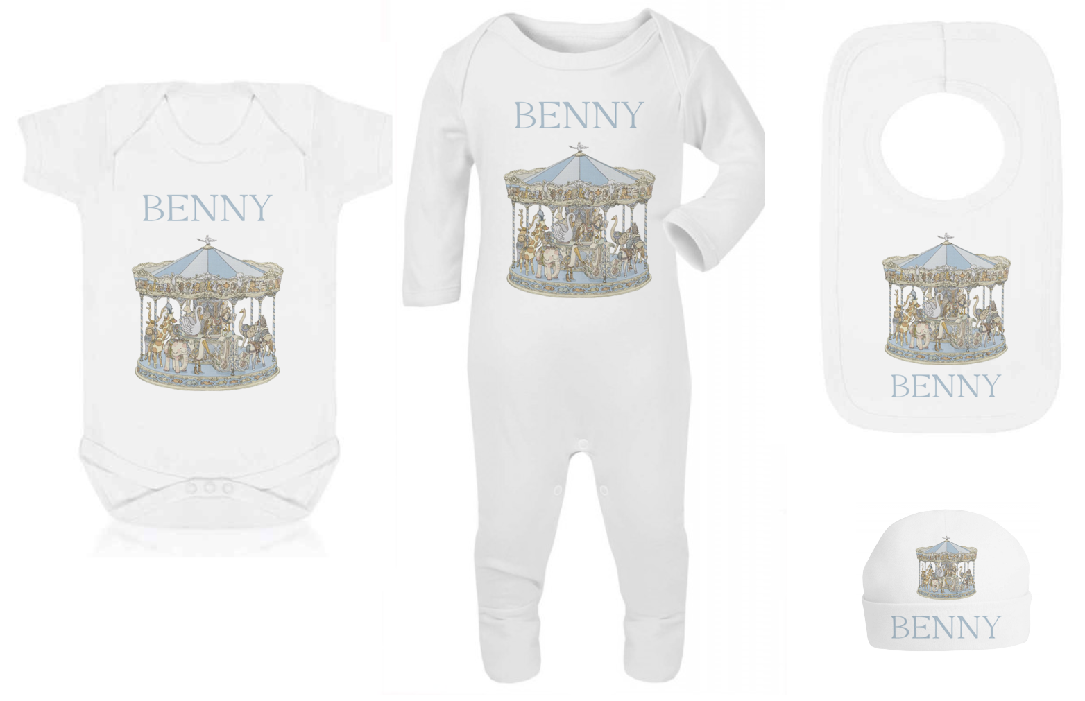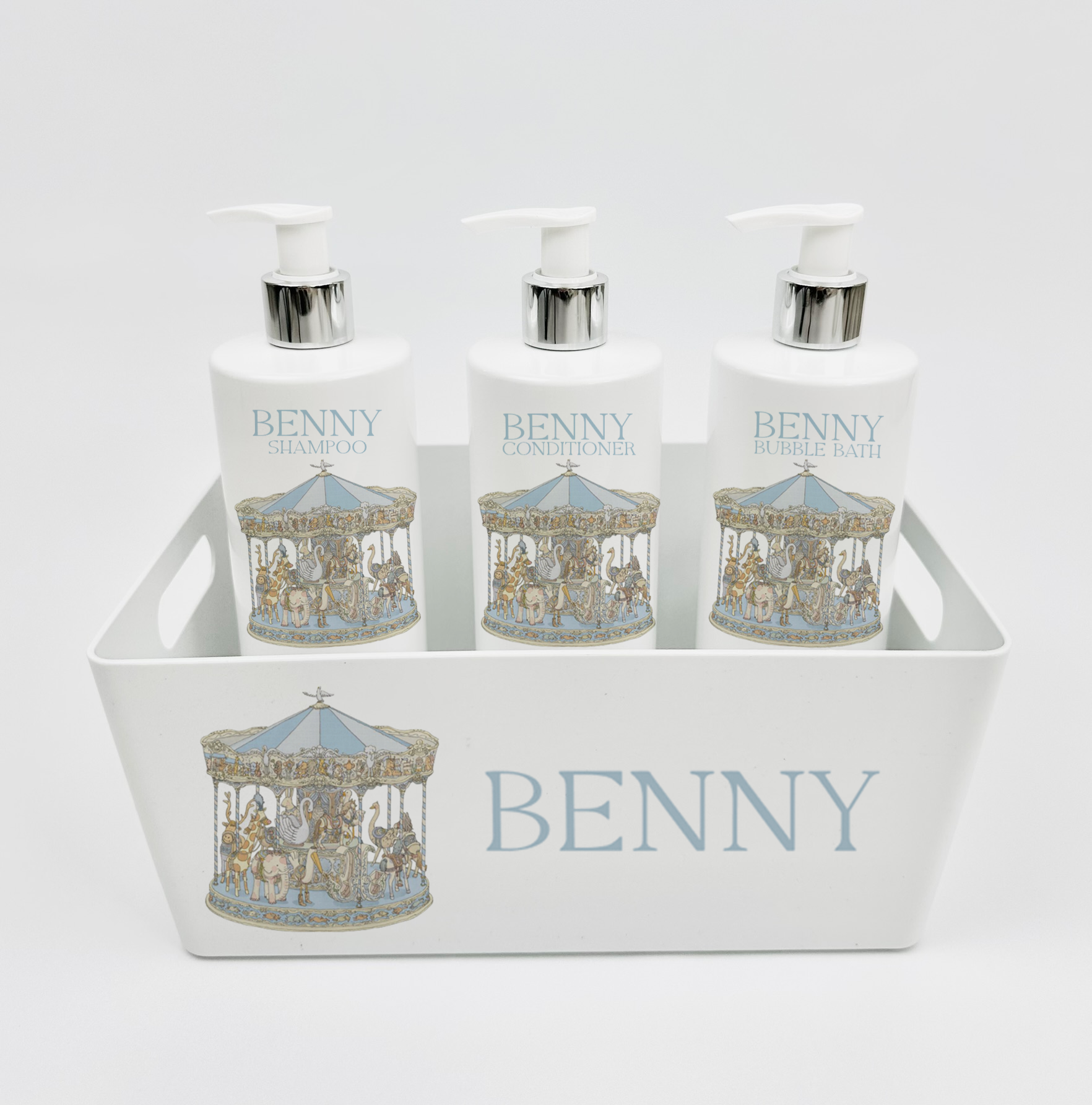 Ok baby bath personalised set vintage carousal Blue