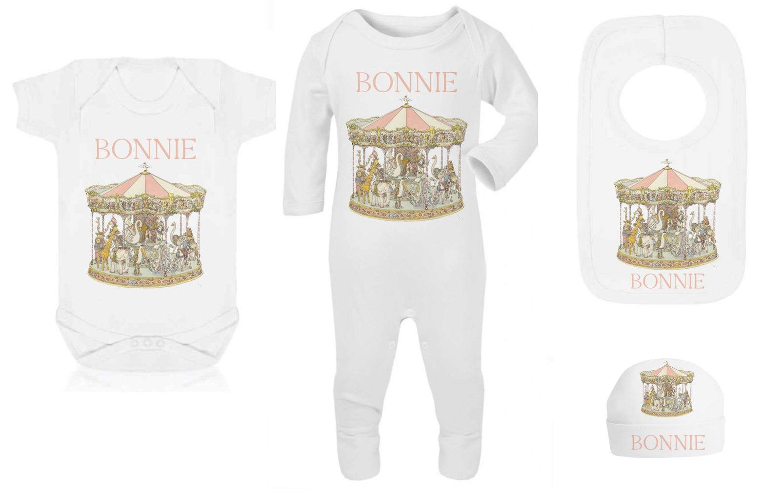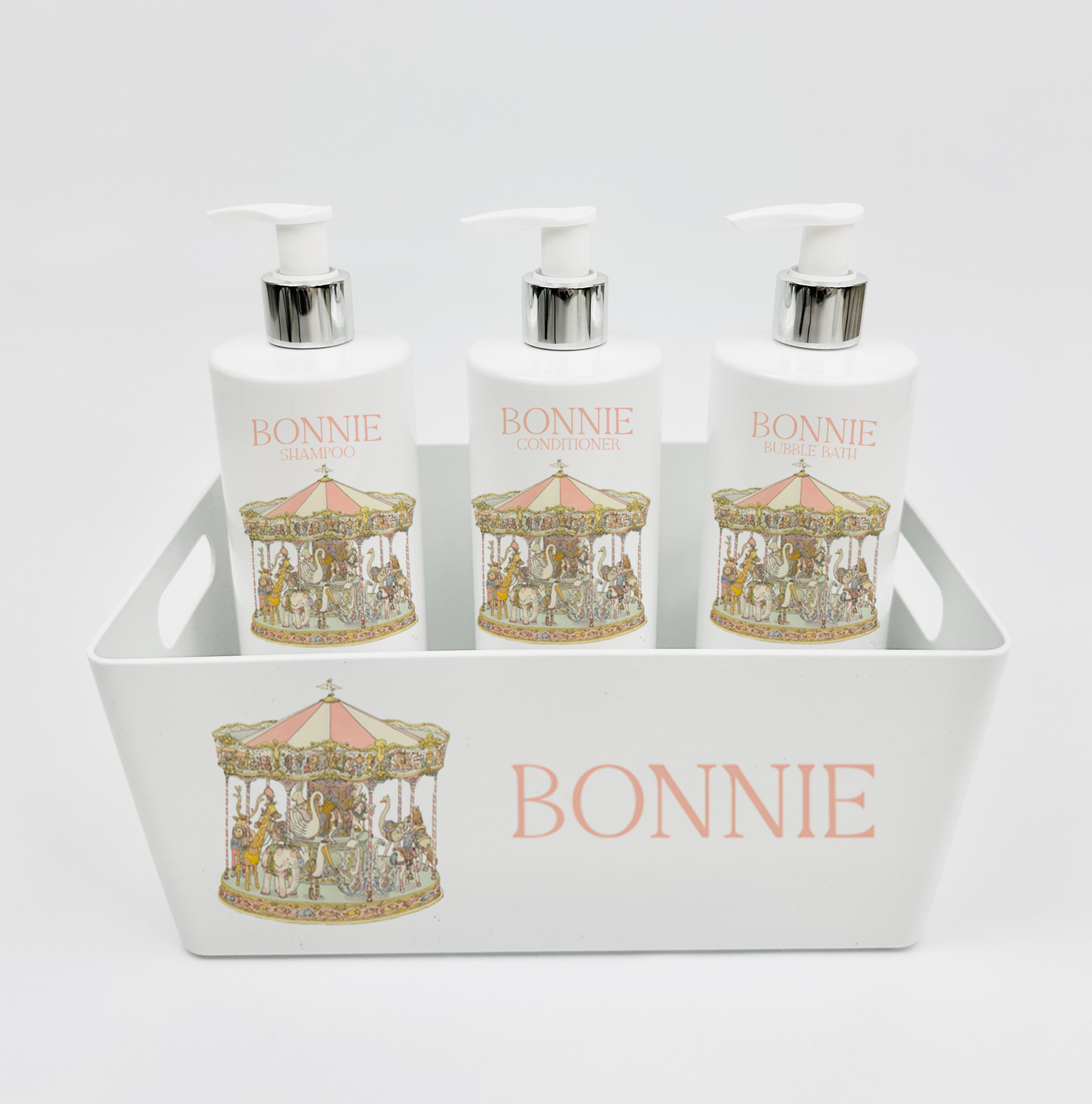 Ok baby bath personalised set vintage carousal pink