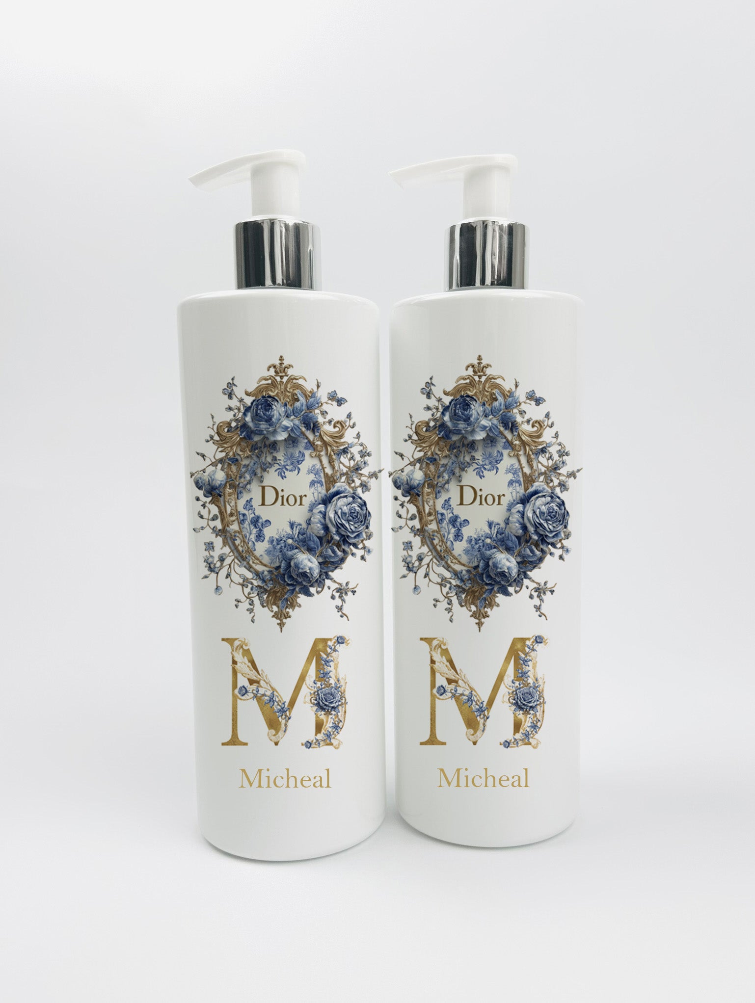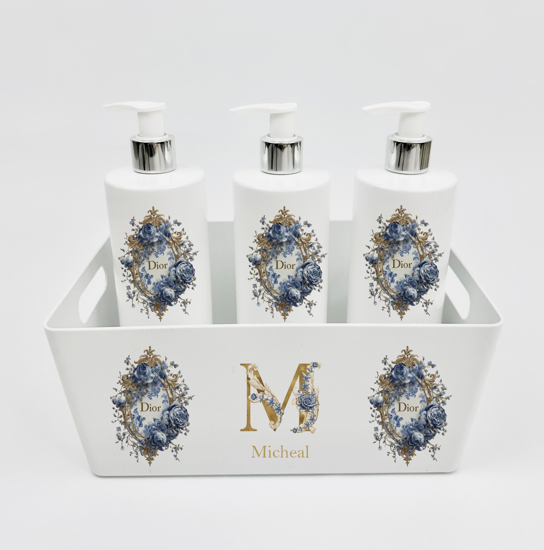 Shnuggle bath personalised set blue/gold rose