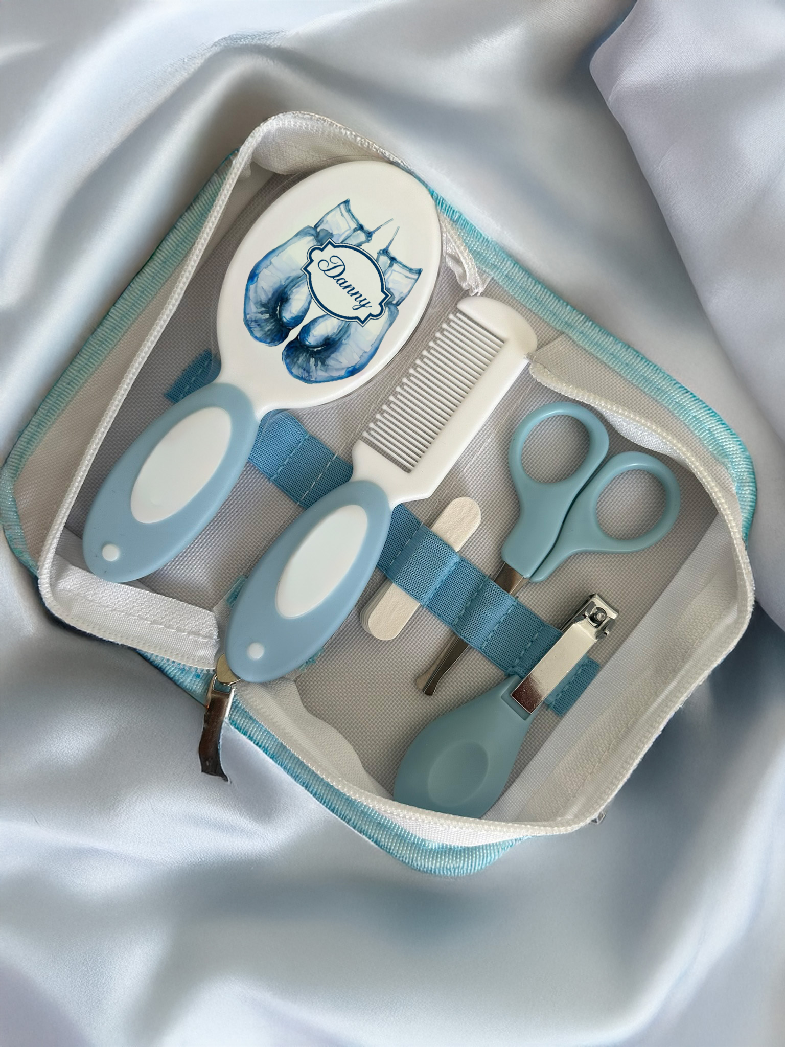 Type: Nail Clippers, Nail File, Baby Comb, Baby Brush, Baby Scissors and Nasal Clearer. all comes in a handy zip up case with security straps to keep little one's items organised.